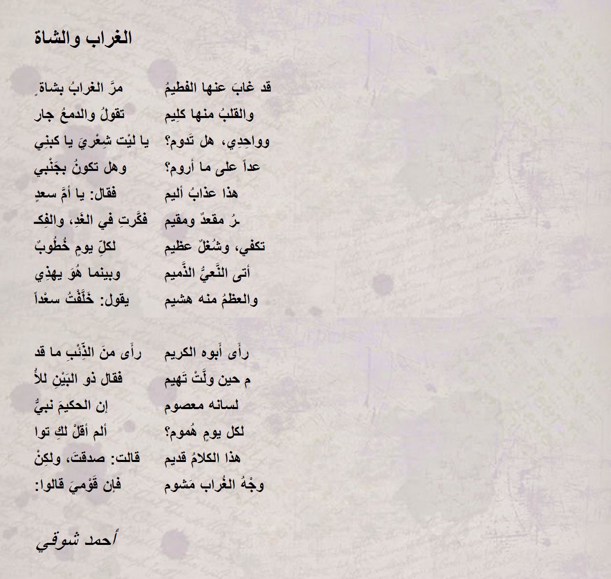 مرَّ الغرابُ بشاة ٍ قد غابَ عنها الفطيمُ