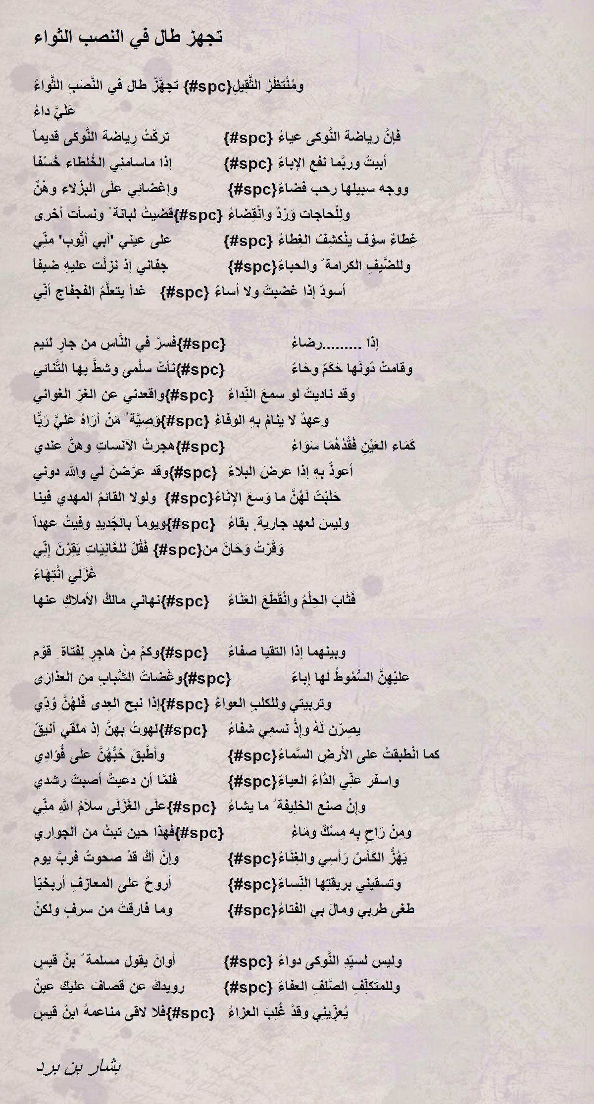 تجهَّزْ طال في النَّصَبِ الثَّواءُ {#spc}ومُنْتظَرُ الثَّقِيلِ عَلَيَّ داءُ