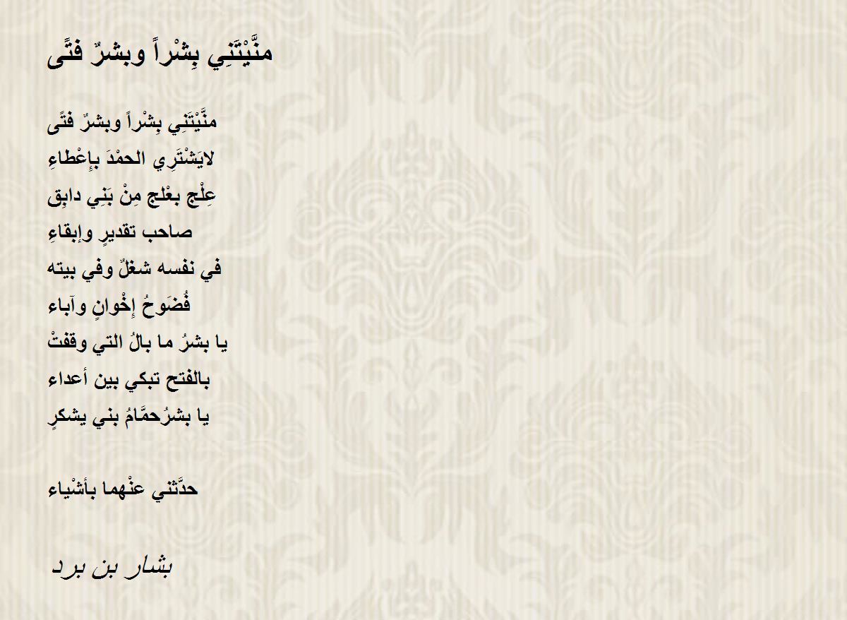 منَّيْتَنِي بِشْراً وبشرٌ فتًى