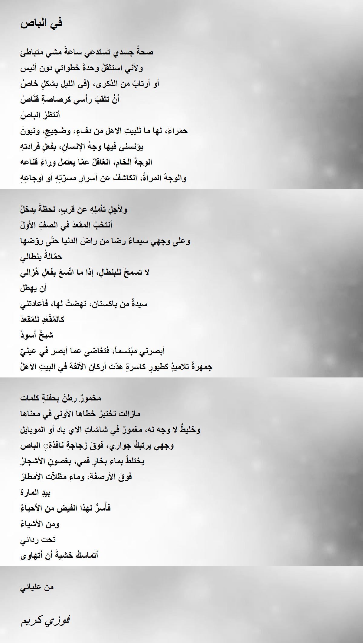 وجهي يرتبكُ جواري، فوقَ زجاجةِ نافذةِِ الباص