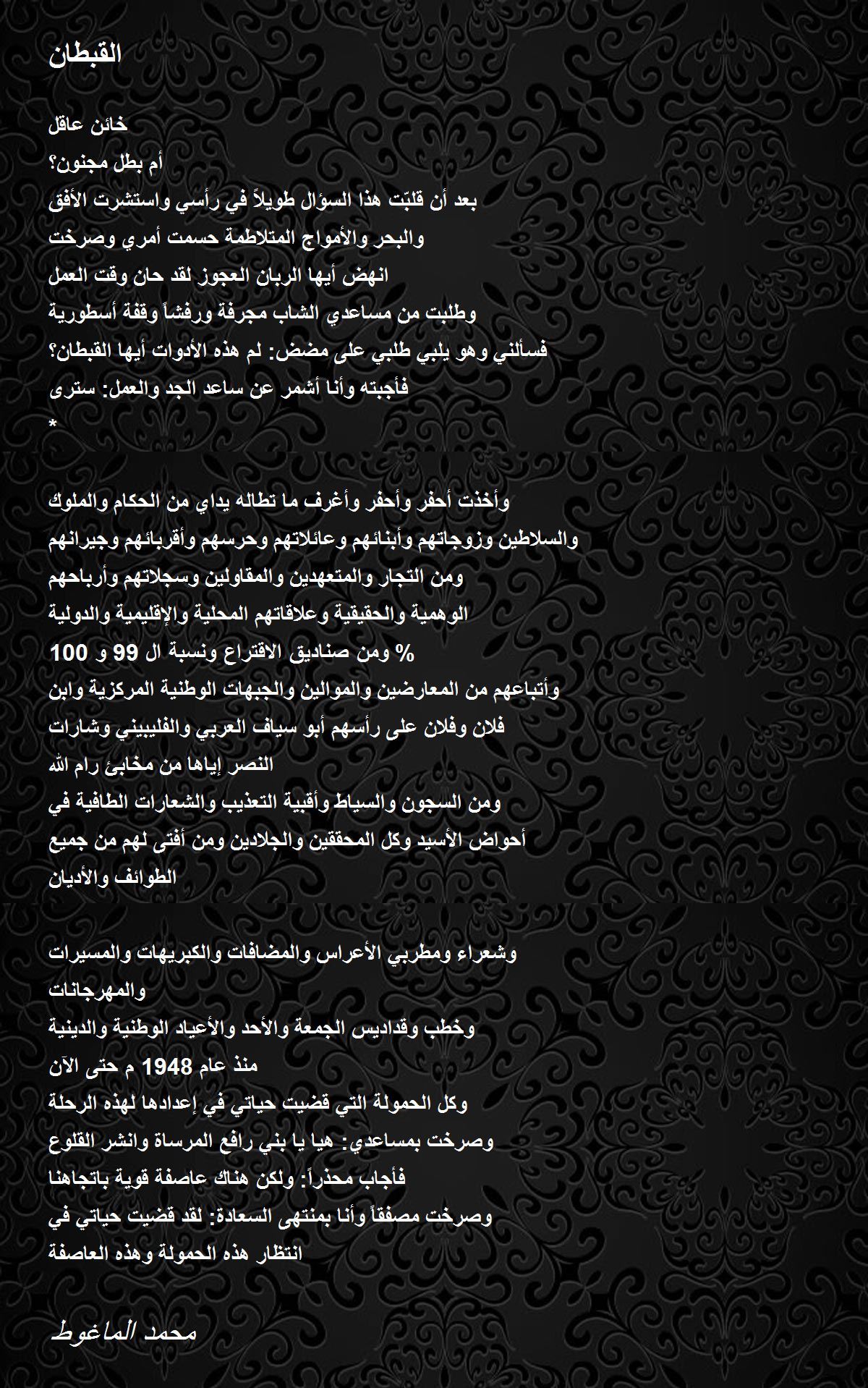 وشعراء ومطربي الأعراس والمضافات والكبريهات والمسيرات