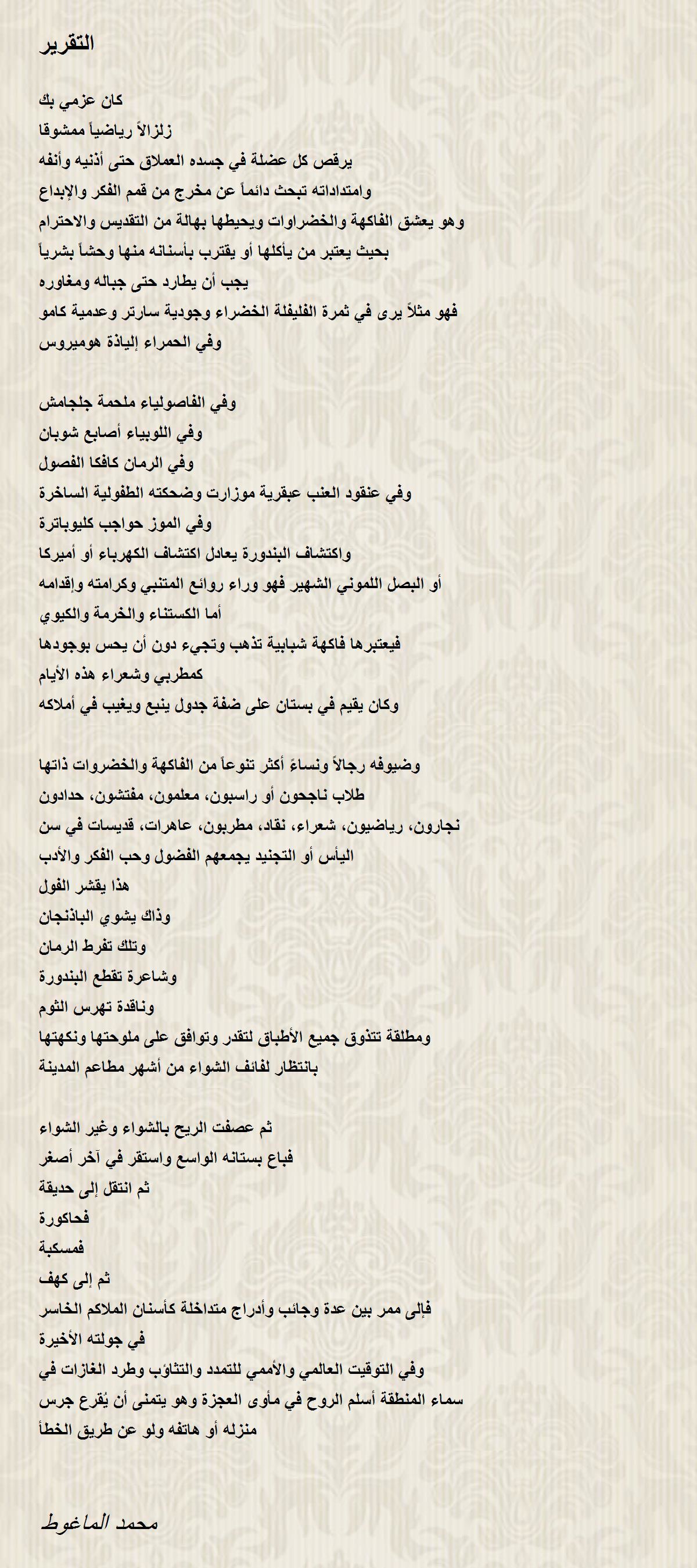 فهو مثلاً يرى في ثمرة الفليفلة الخضراء وجودية سارتر وعدمية كامو