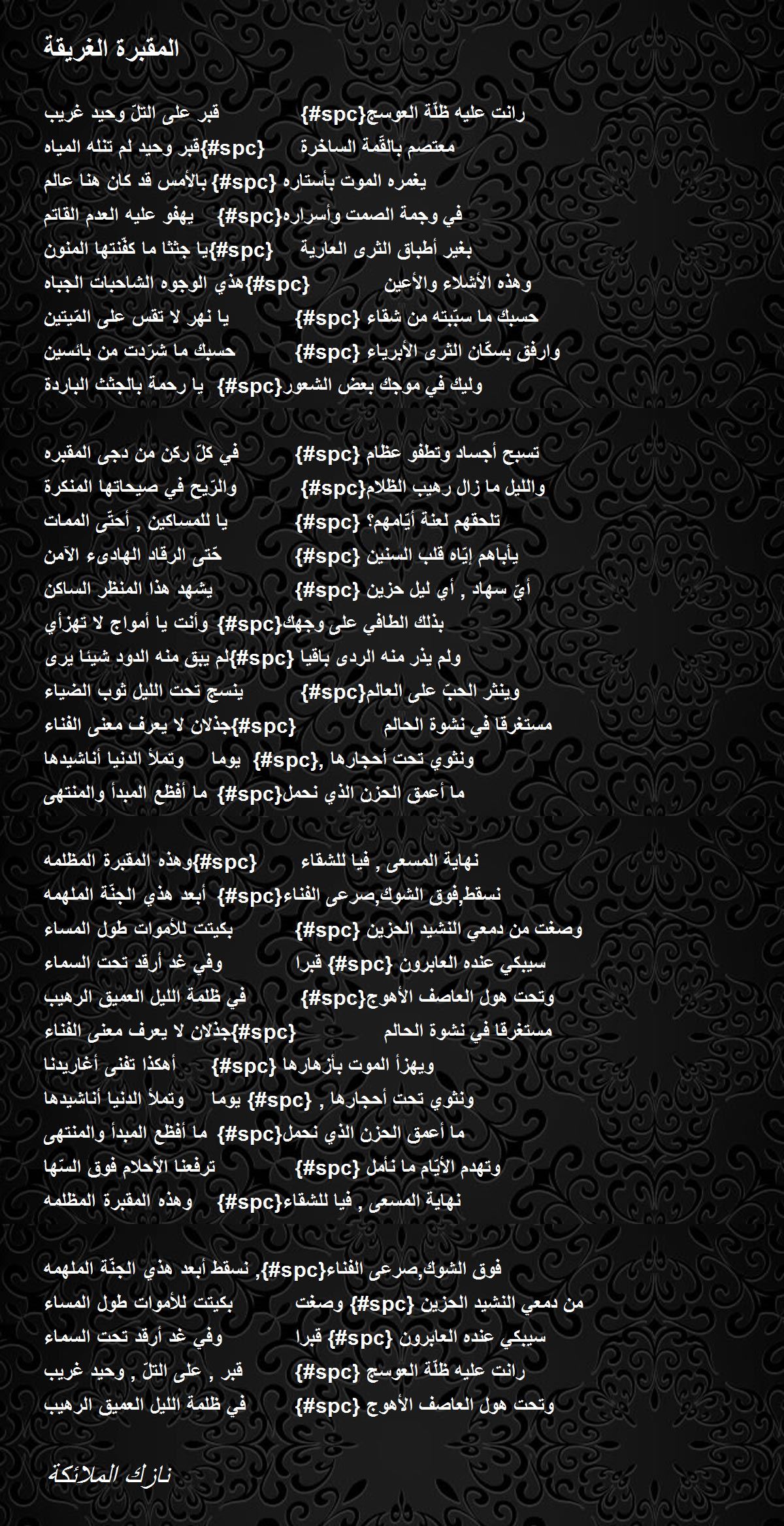 بكيتت للأموات طول المساء {#spc} وصغت من دمعي النشيد الحزين