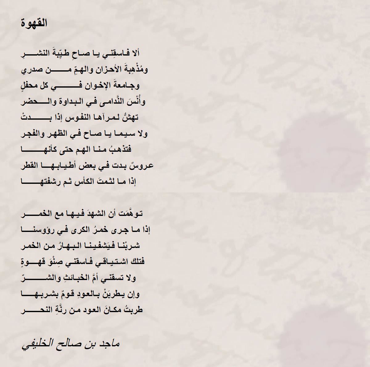 فتلك اشـتـيـاقـي فـاسقنـي صِنْوَ قهـــــوةٍ