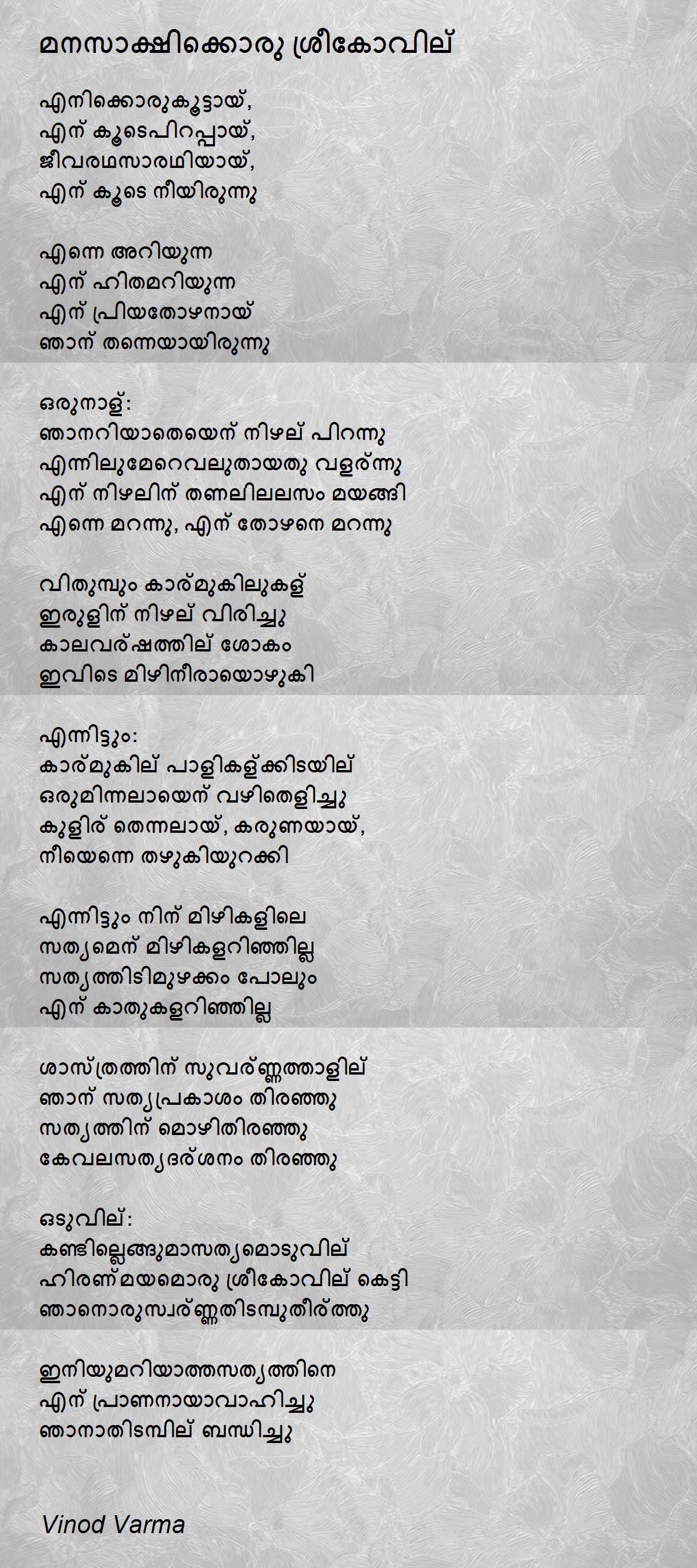 ഹിരണ്മയമൊരു ശ്രീകോവില് കെട്ടി