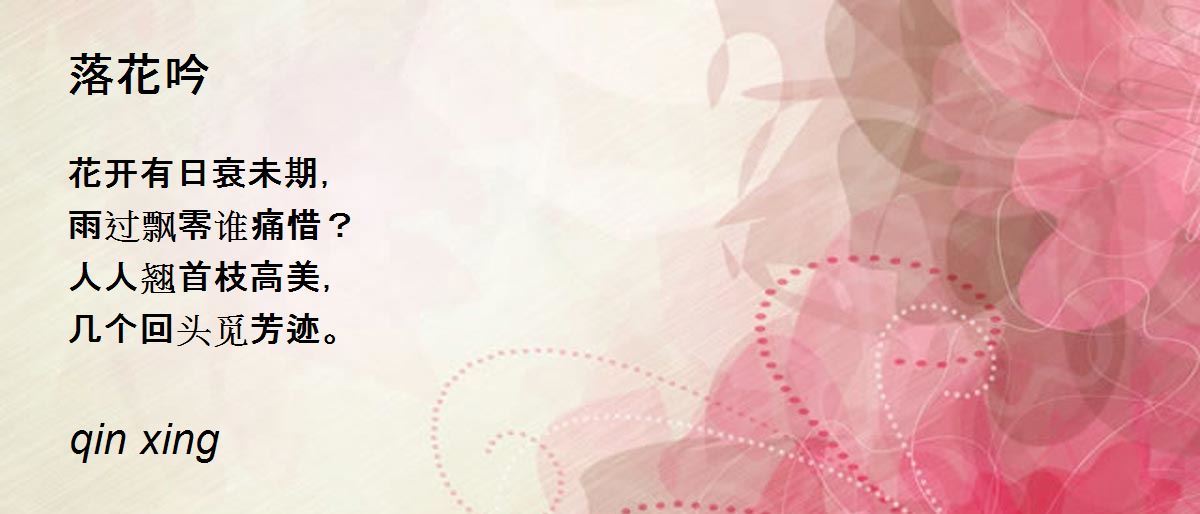 花开有日衰未期, 雨过飘零谁痛惜? 人人翘首枝高美, 几个回头觅芳迹。