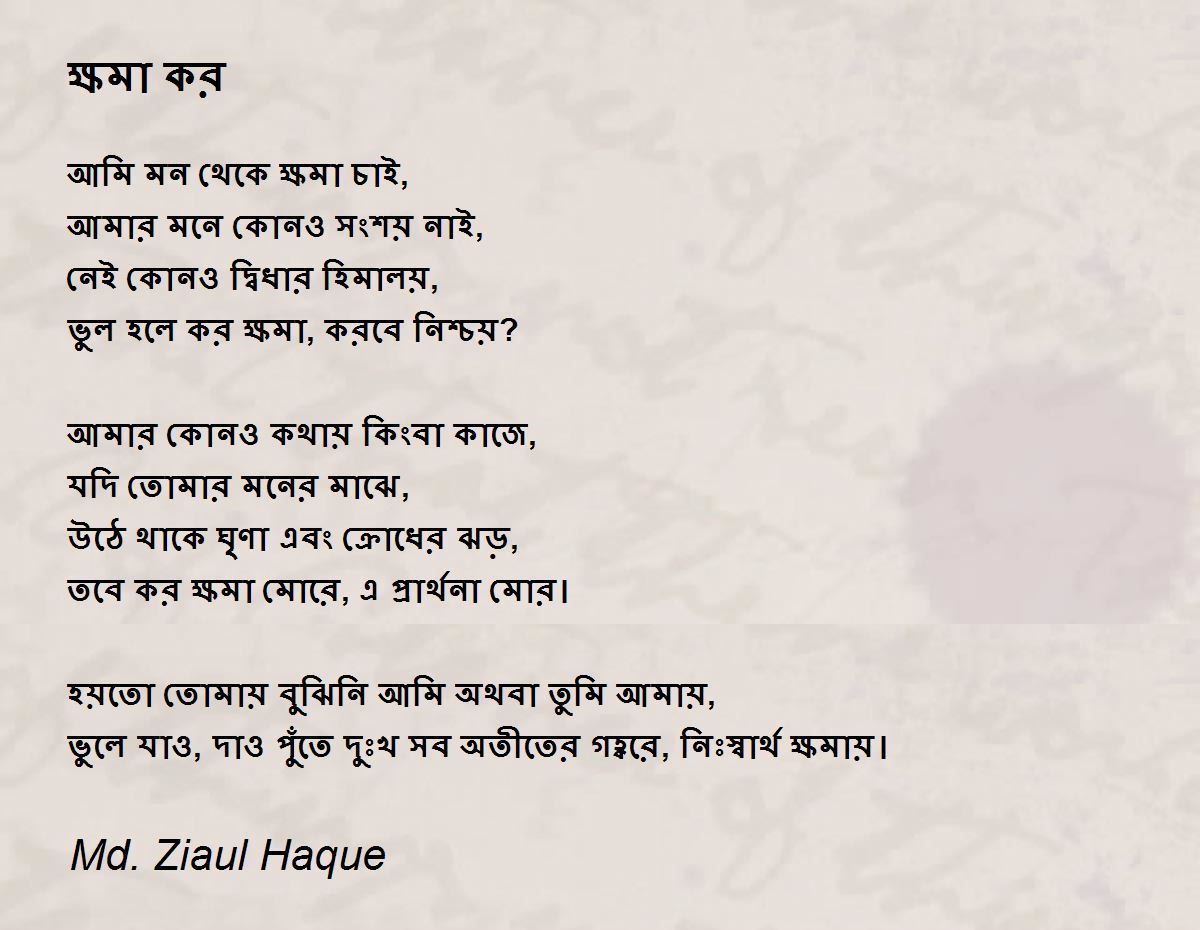 ভুলে যাও, দাও পুঁতে দুঃখ সব অতীতের গহ্বরে, নিঃস্বার্থ ক্ষমায়।