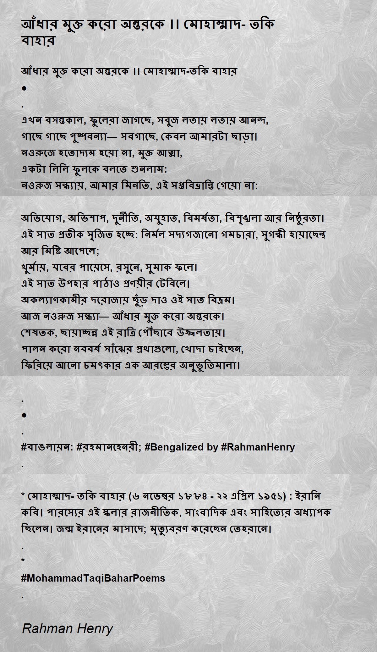 #বাঙলায়ন: #রহমানহেনরী; #Bengalized by #RahmanHenry