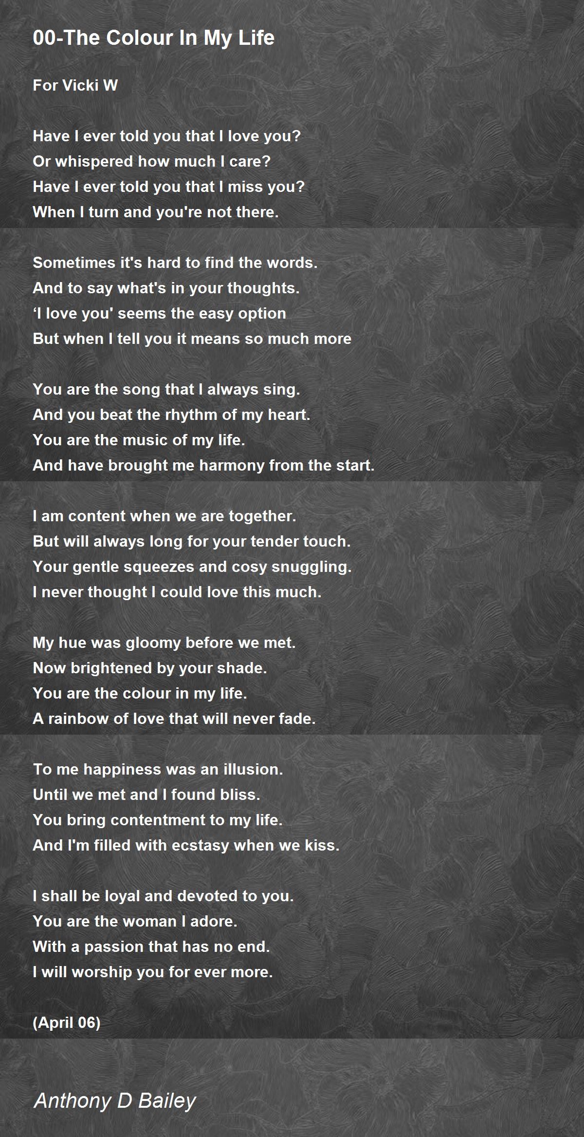 You are the colour in my life.