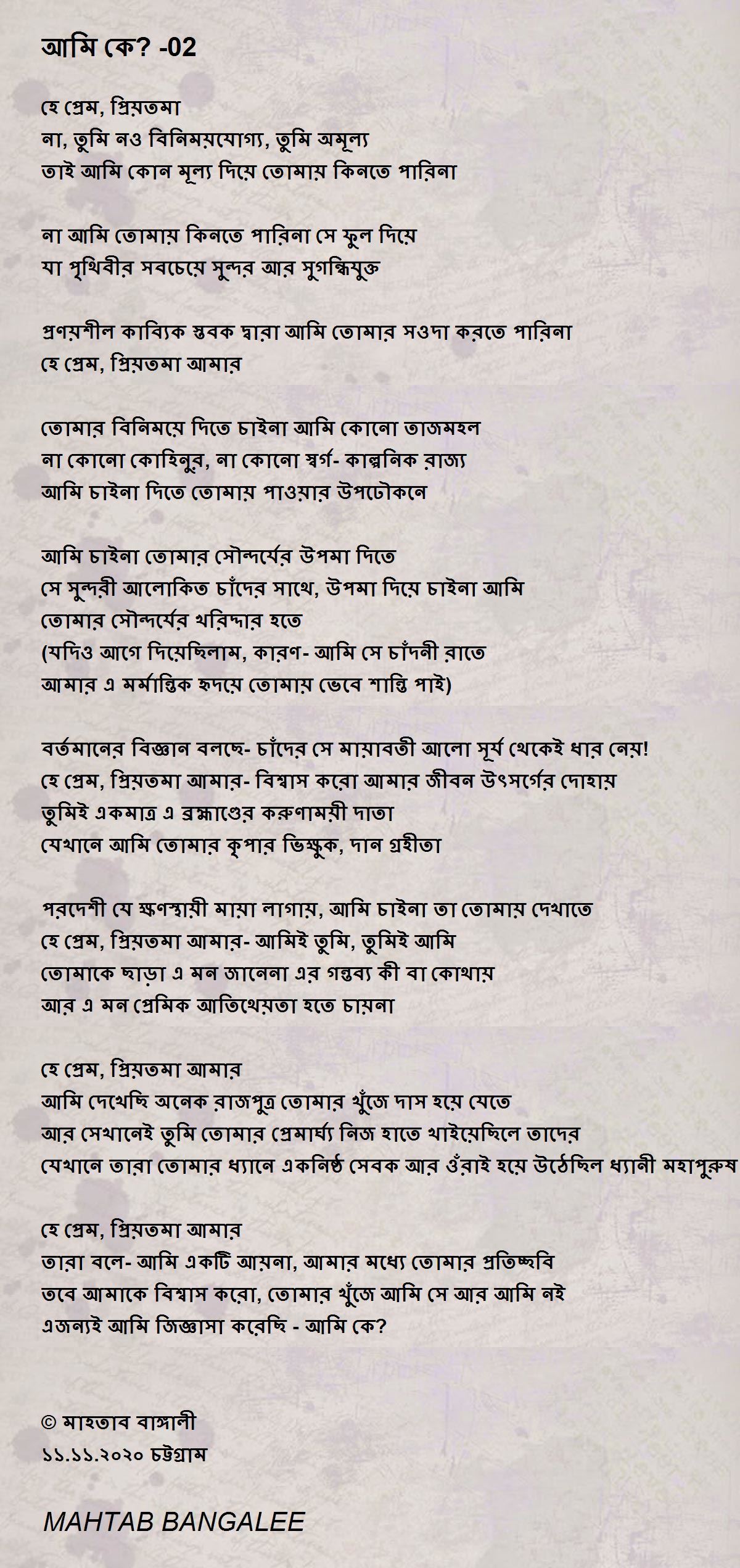 হে প্রেম, প্রিয়তমা আমার- আমিই তুমি, তুমিই আমি