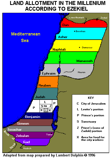 God has reasons for setting the new boundaries he has chosen for the 1000 years of peace. They go back to the book of Genesis and Jacob with his wives and the sons born.