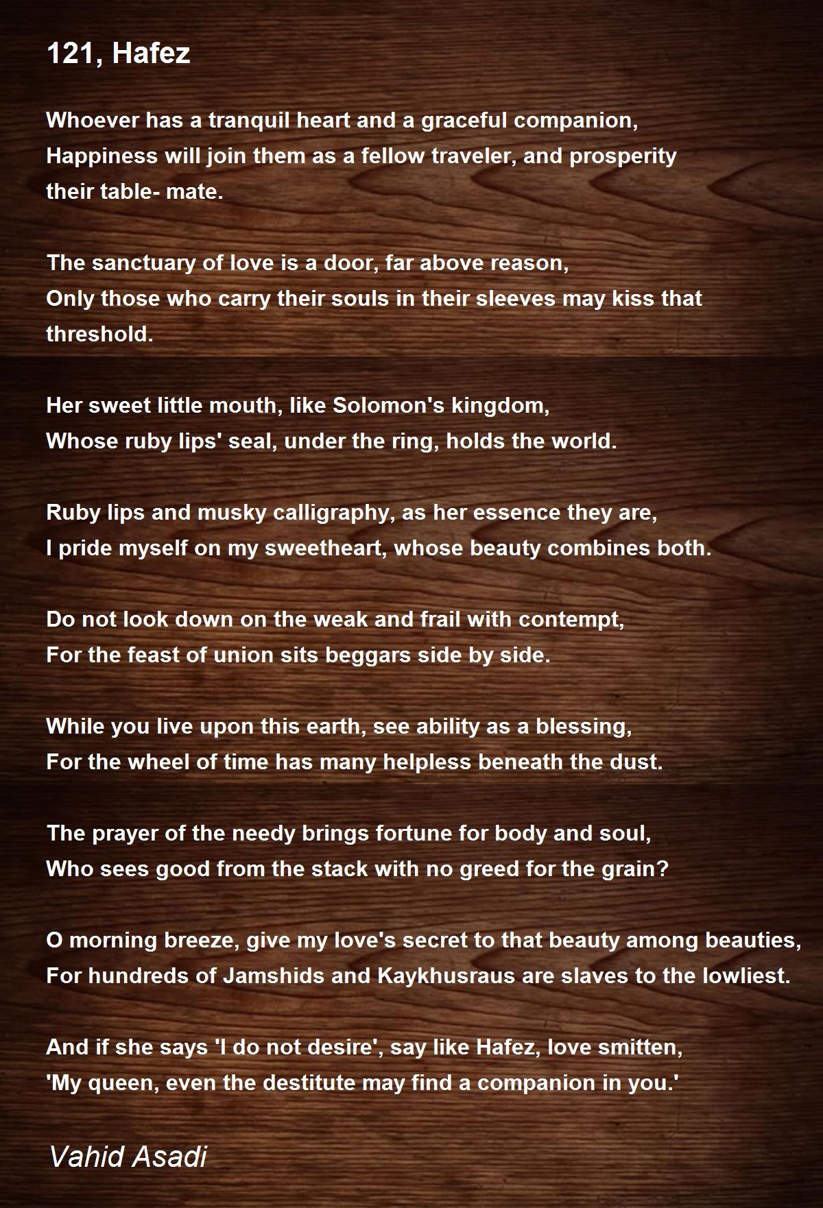 And if she says 'I do not desire', say like Hafez, love smitten,