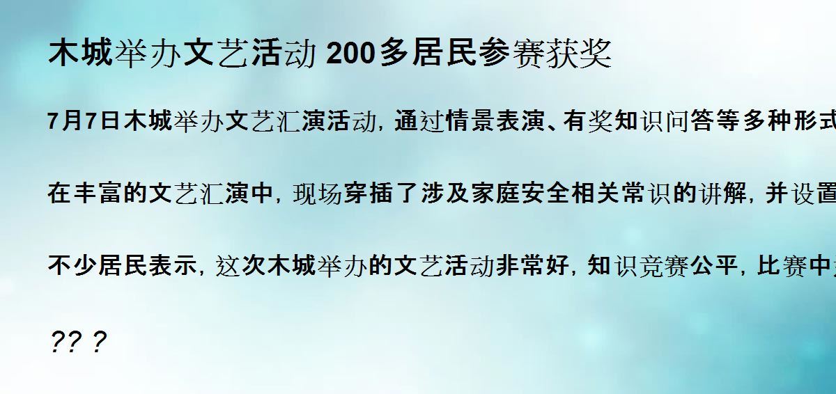7月7日木城举办文艺汇演活动,通过情景表演、有奖知识问答等多种形式,向居民普及了安全生产相关知识。当天吸引了200多名居民参加活动。