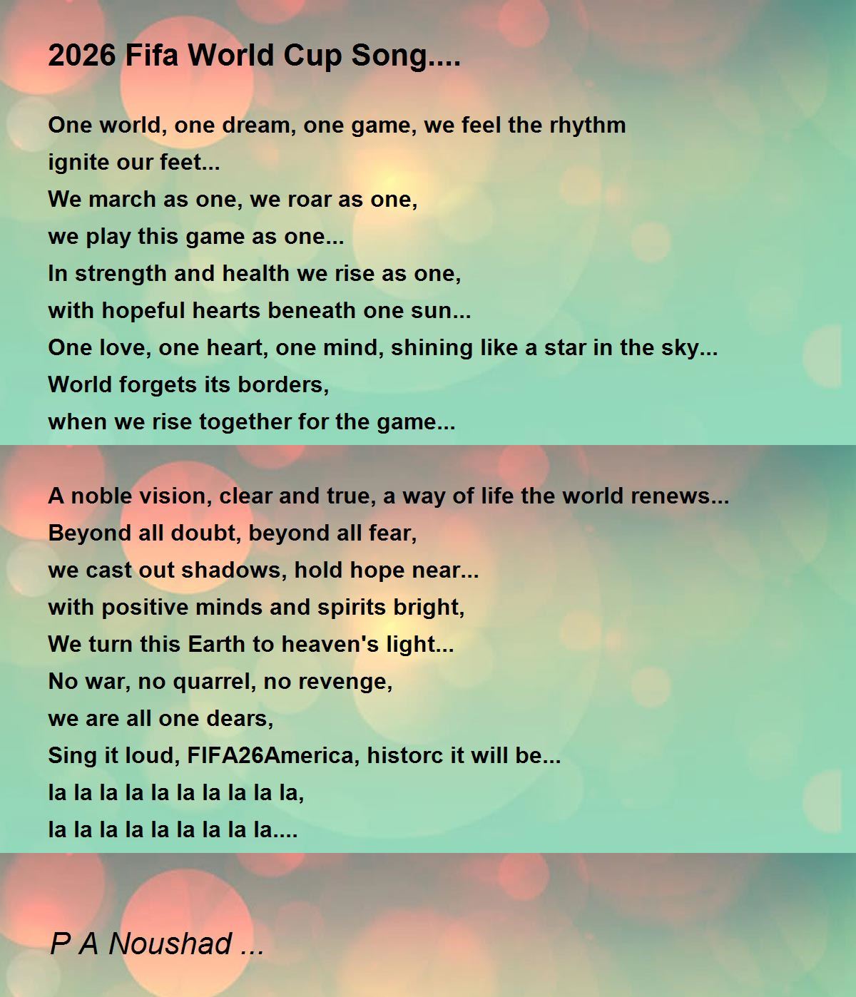 Sing it loud, FIFA26America, historc it will be...