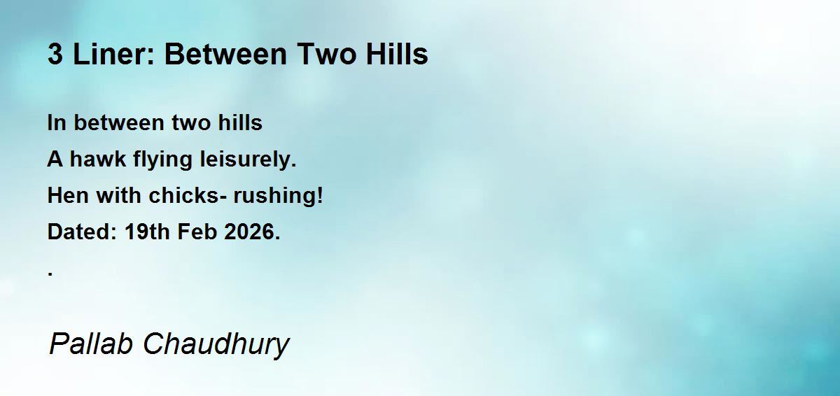 In between two hillsA hawk flying leisurely.Hen with chicks- rushing! Dated: 19th Feb 2026..