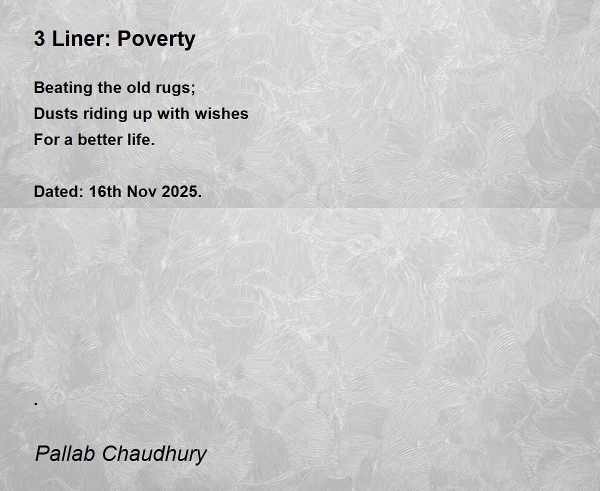 Beating the old rugs; Dusts riding up with wishes For a better life. Dated: 16th Nov 2025. .