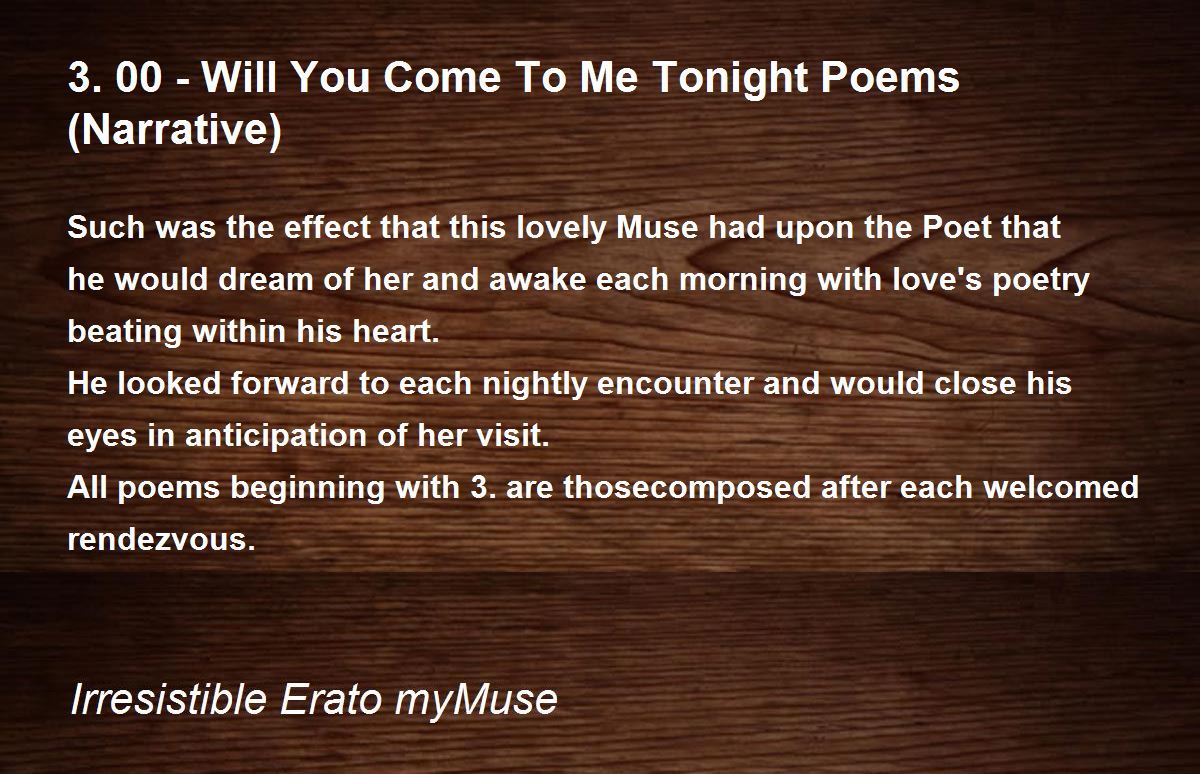 Such was the effect that this lovely Muse had upon the Poet that he would dream of her and awake each morning with love's poetry beating within his heart.