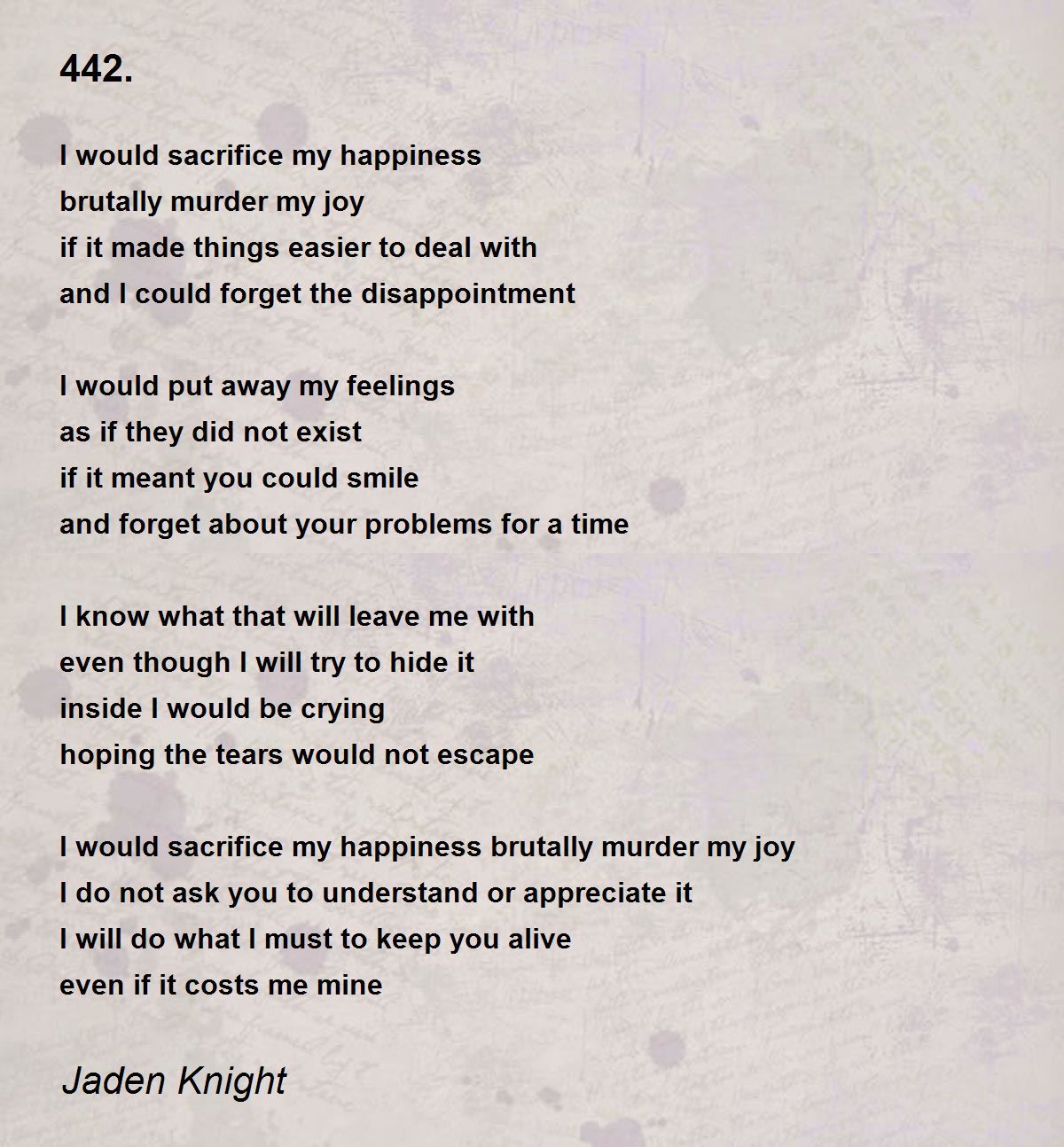 I would sacrifice my happiness brutally murder my joy
