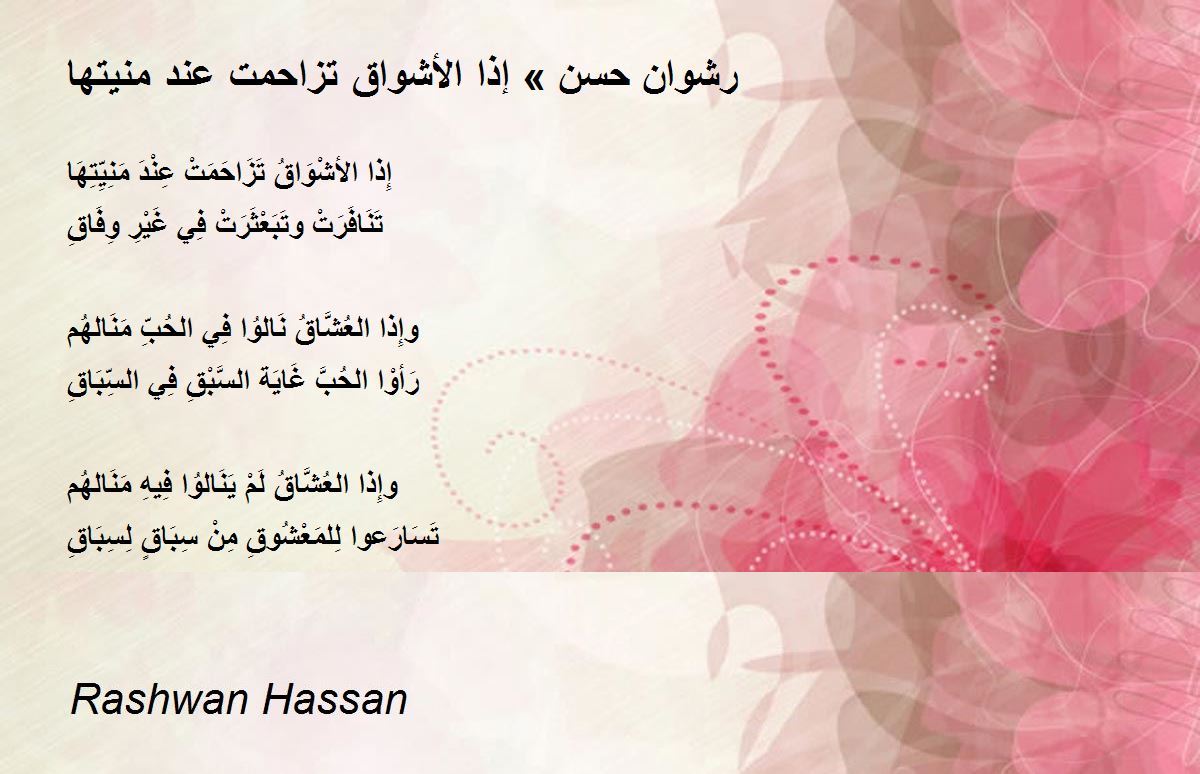إِذا الأشْوَاقُ تَزَاحَمَتْ عِنْدَ مَنِيِّتِهَا
