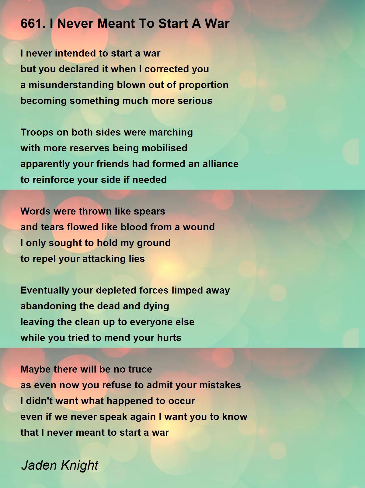 Becoming something much more serious is amazing. You believe in love. You try to solve misunderstanding. You never try to start a war. An amazing poem is very brilliantly penned...10