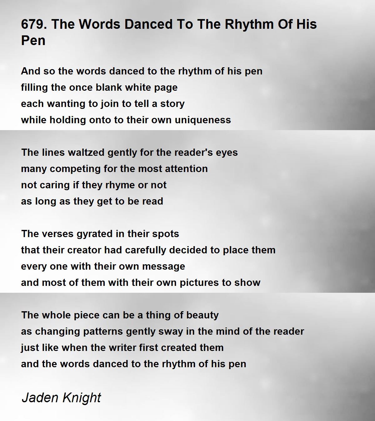 And so the words danced to the rhythm of his pen