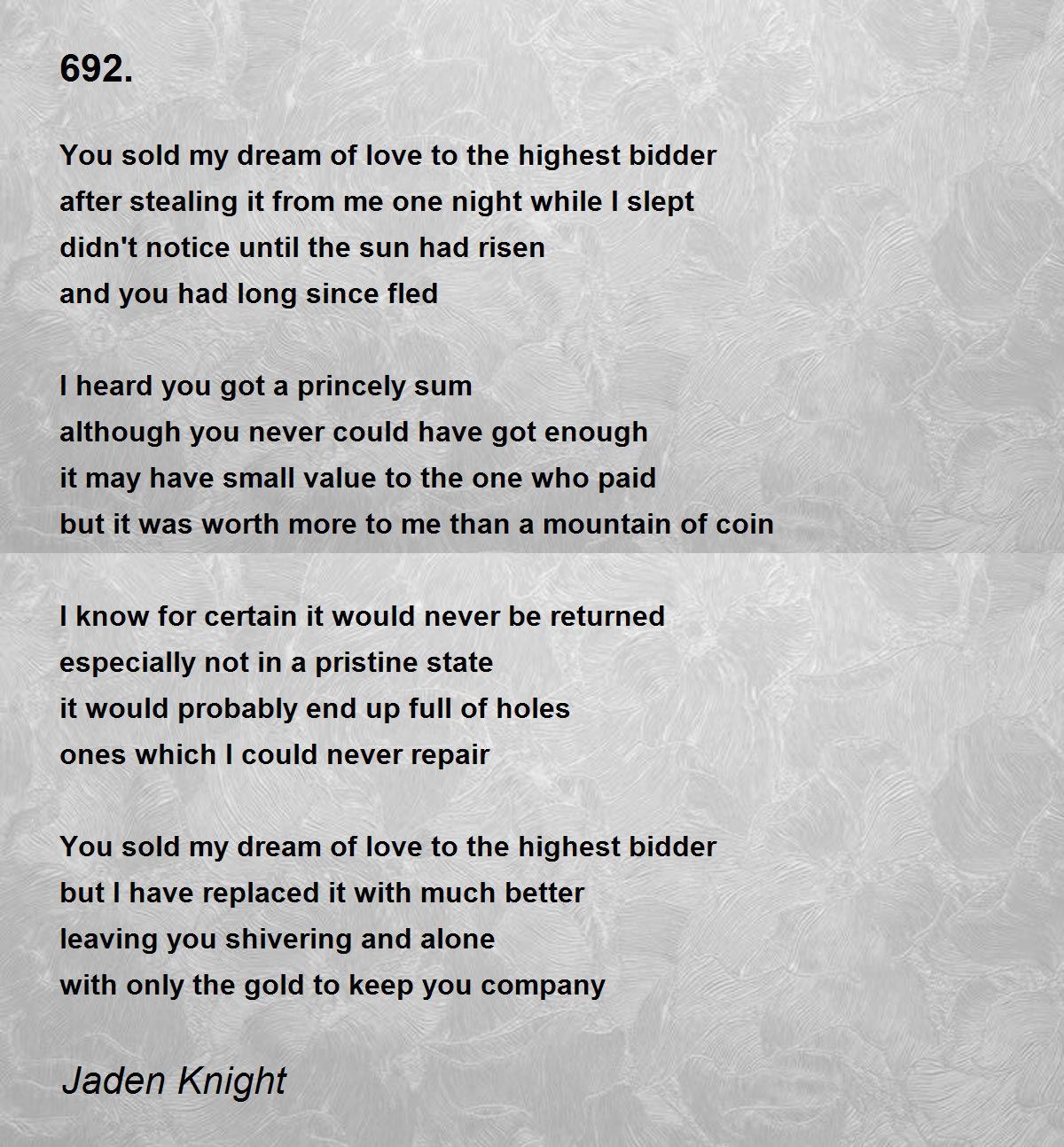 You sold my dream of love to the highest bidder
