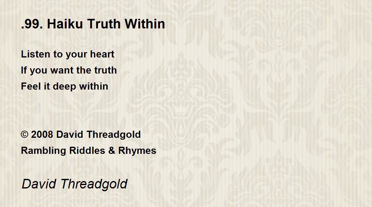 Listen to your heart If you want the truth Feel it deep within © 2008 David Threadgold Rambling Riddles & Rhymes
