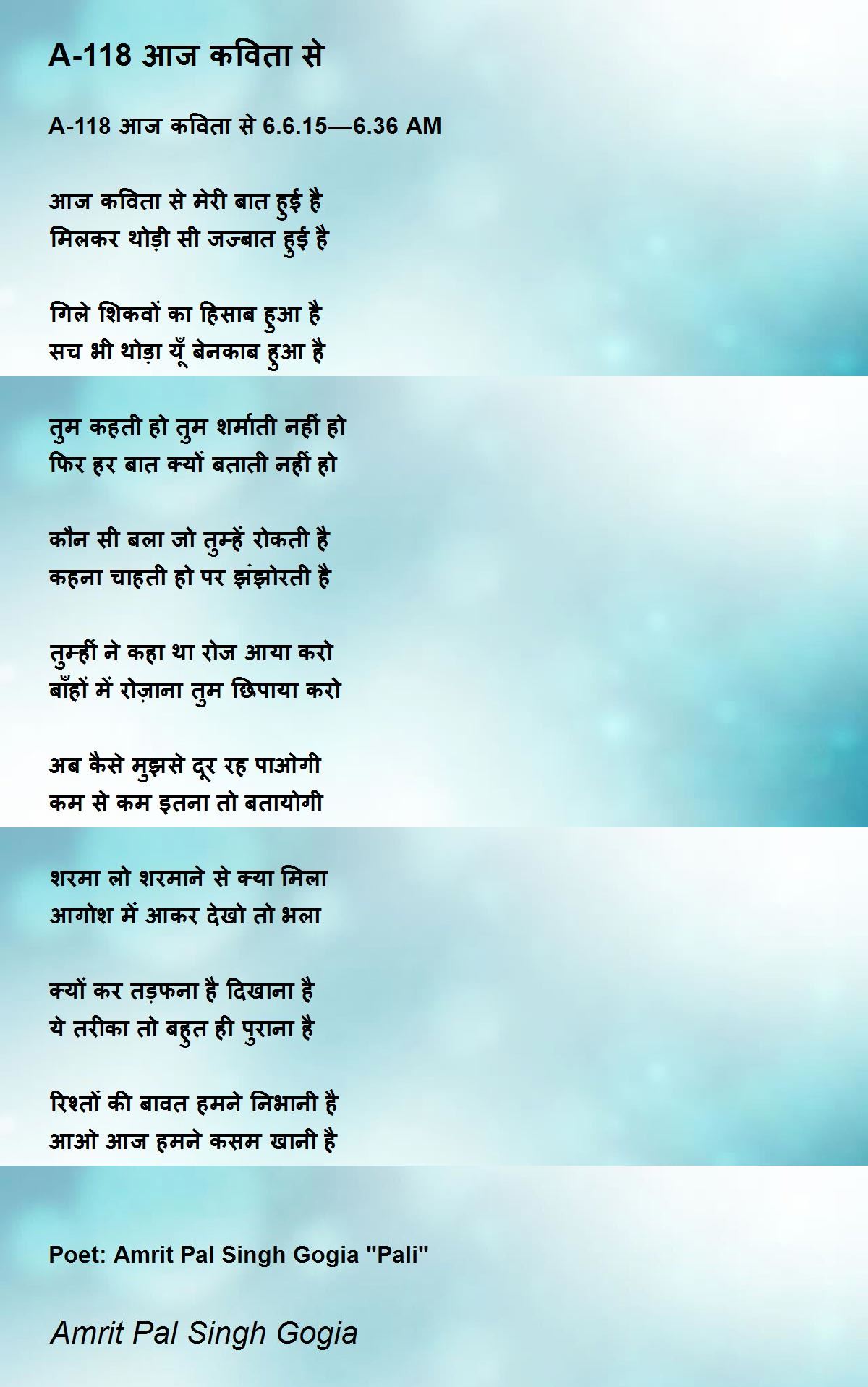 Poet: Amrit Pal Singh Gogia "Pali"