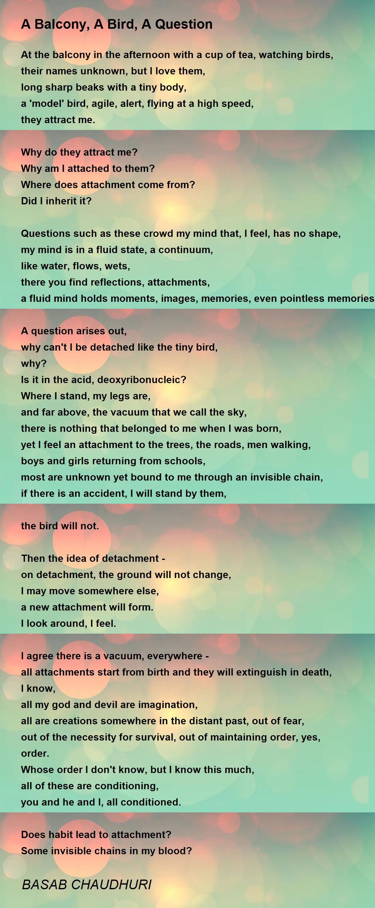 At the balcony in the afternoon with a cup of tea, watching birds,