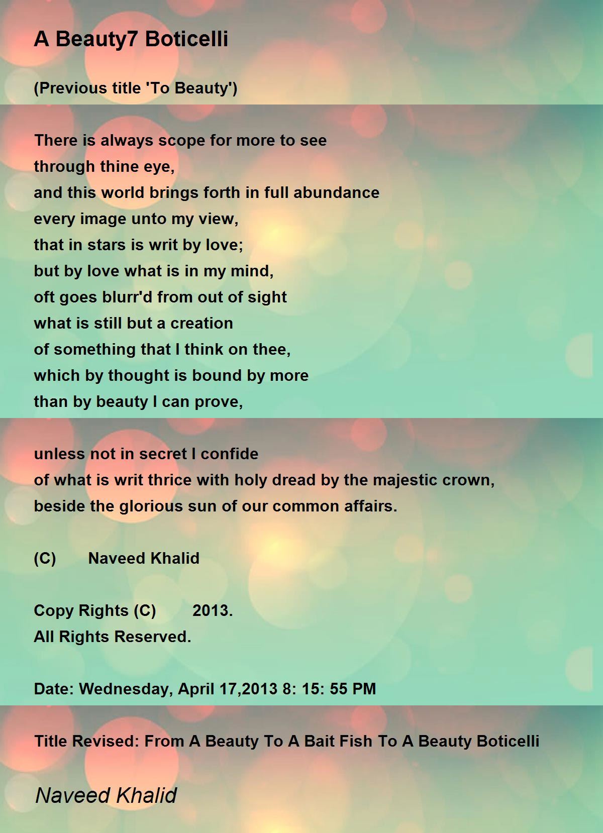 (Previous title 'To Beauty')