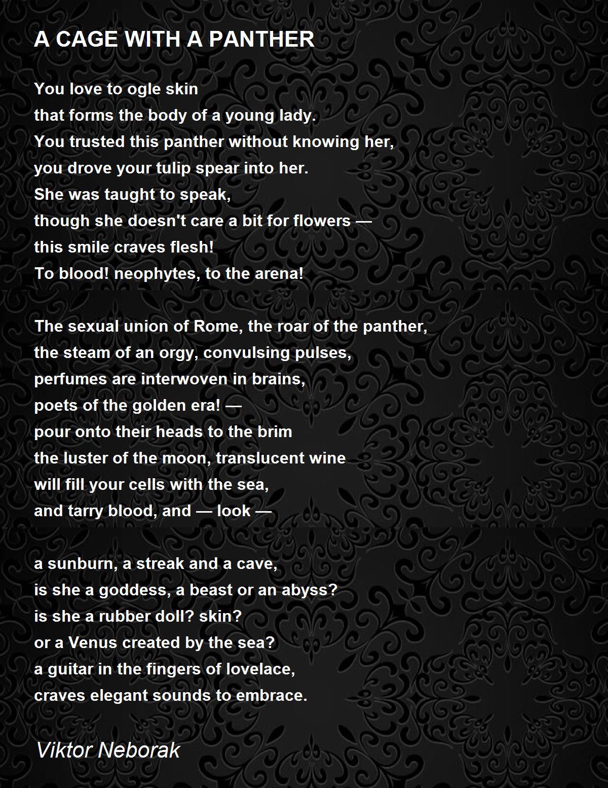 The sexual union of Rome, the roar of the panther,