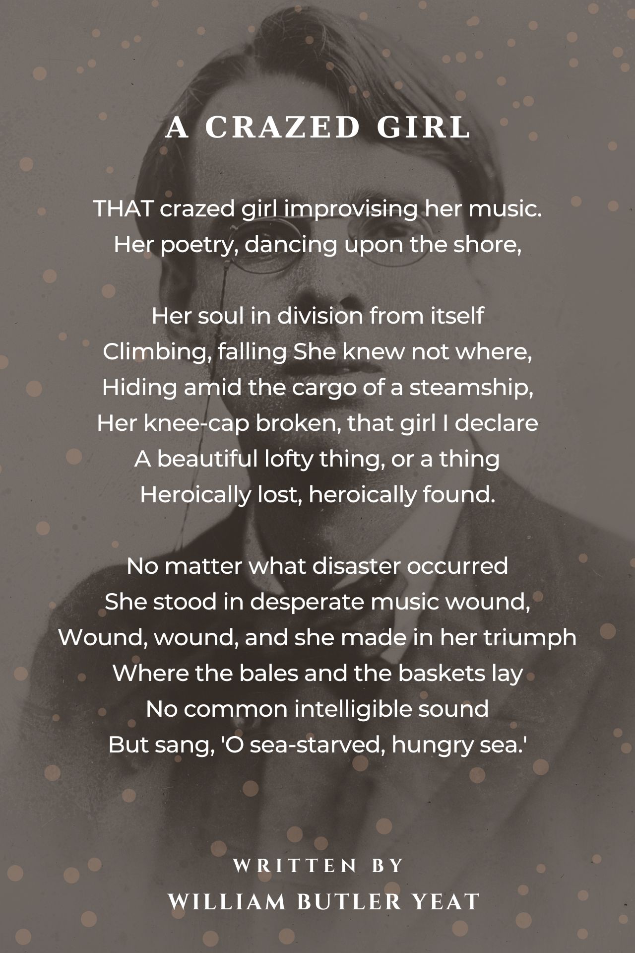 But sang, 'O sea-starved, hungry sea.'