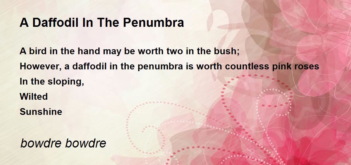 However, a daffodil in the penumbra is worth countless pink roses