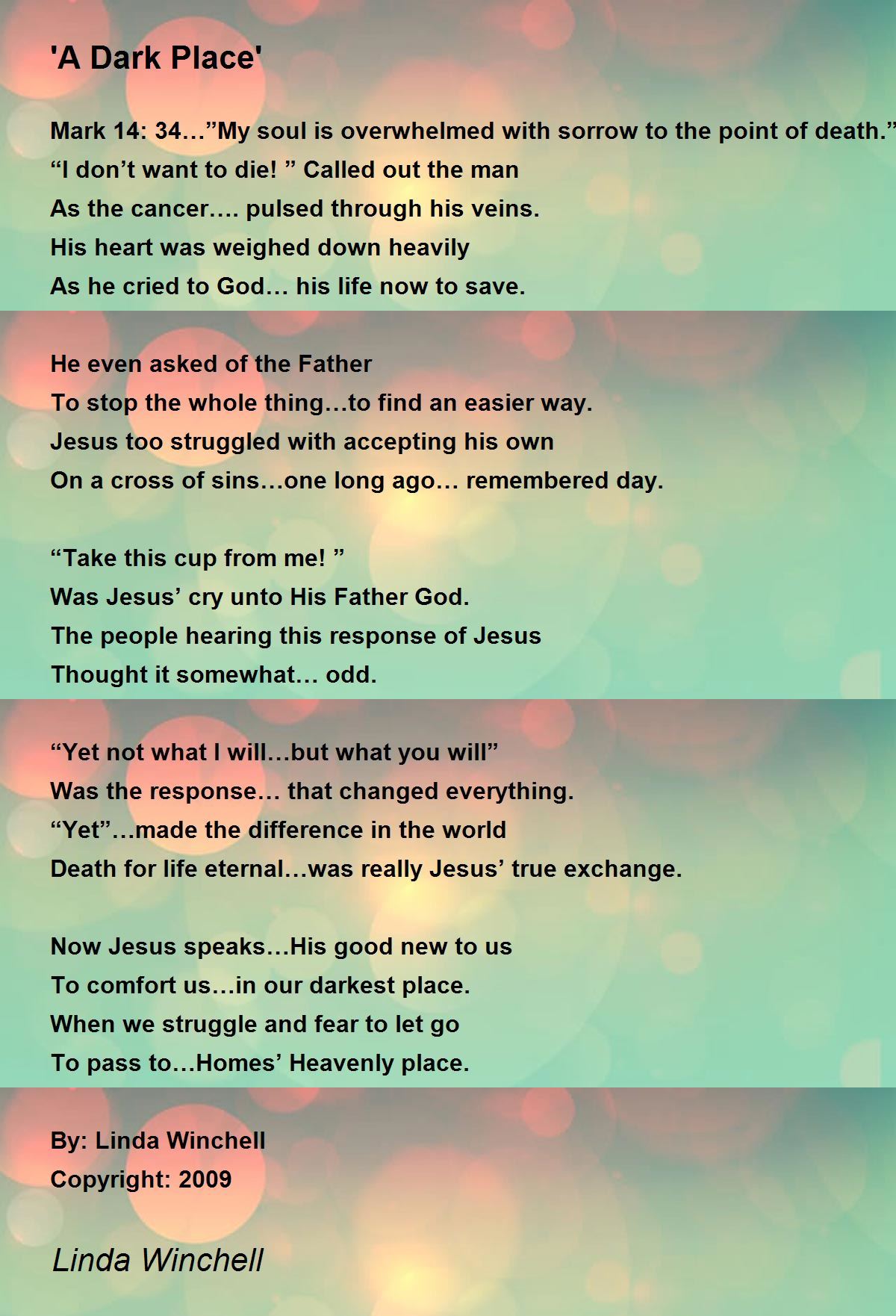 Mark 14: 34…”My soul is overwhelmed with sorrow to the point of death.”