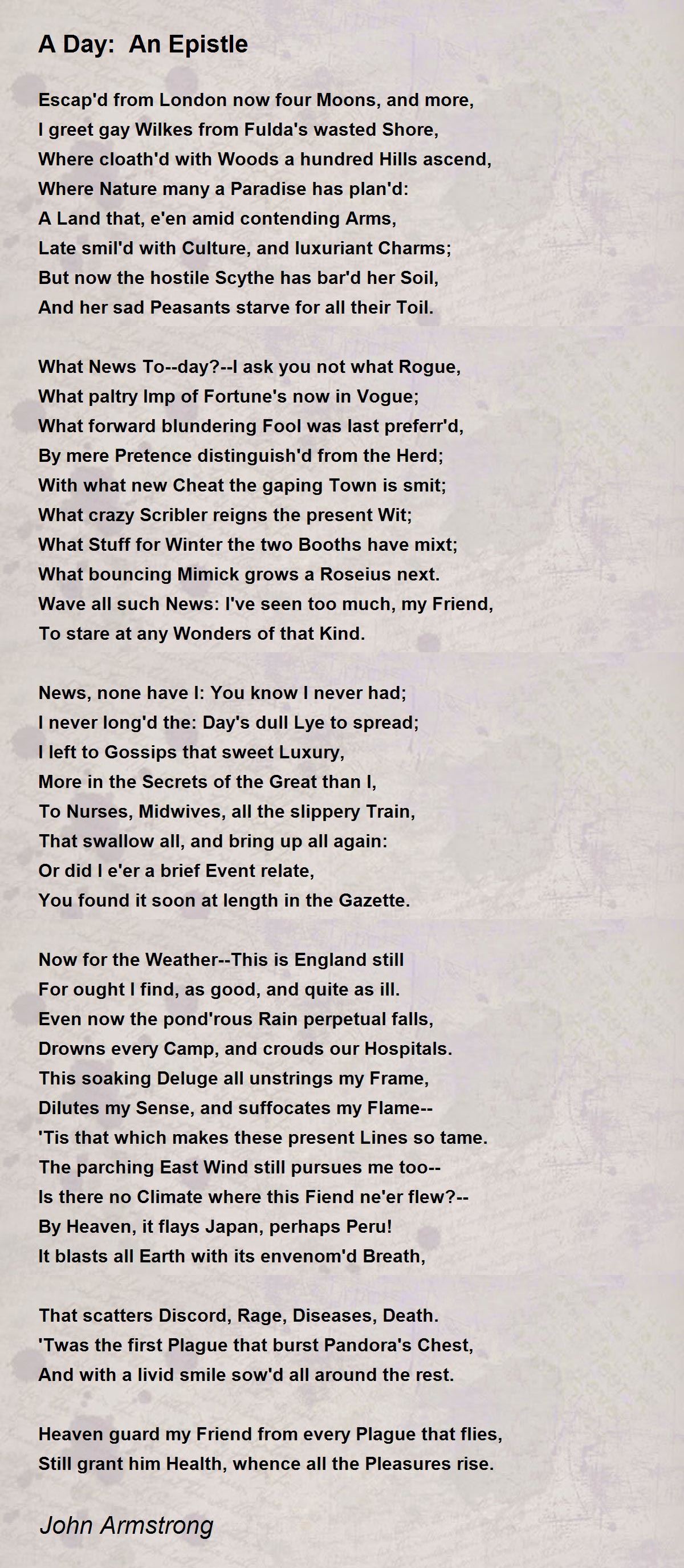 The railing Stream, the busy Rooks, and Murmur of the Bees.