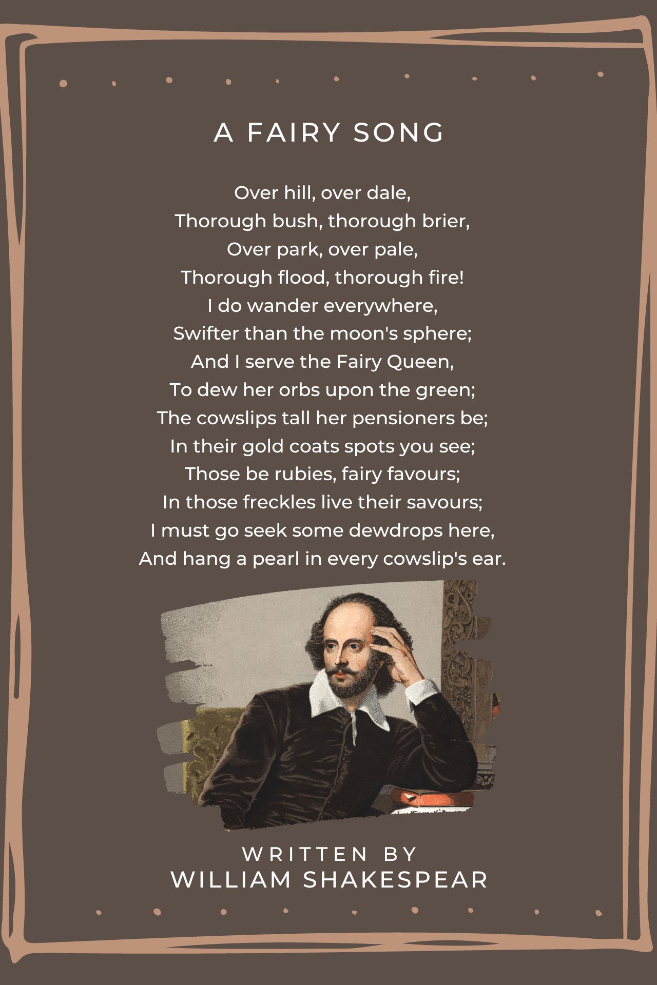 MY FINAL COMMENT: Summed up, the poem celebrates the delicate relationship between fairies and the natural world, showcasing their ability to enhance and beautify even the simplest of flowers! Gorgeously worded!