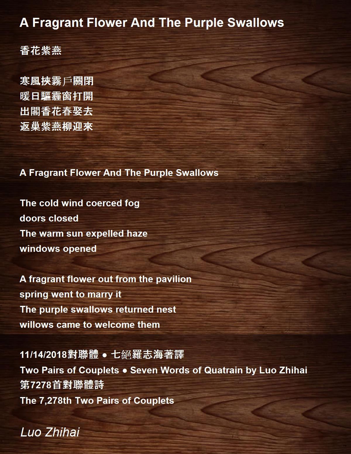 11/14/2018對聯體 ● 七絕羅志海著譯