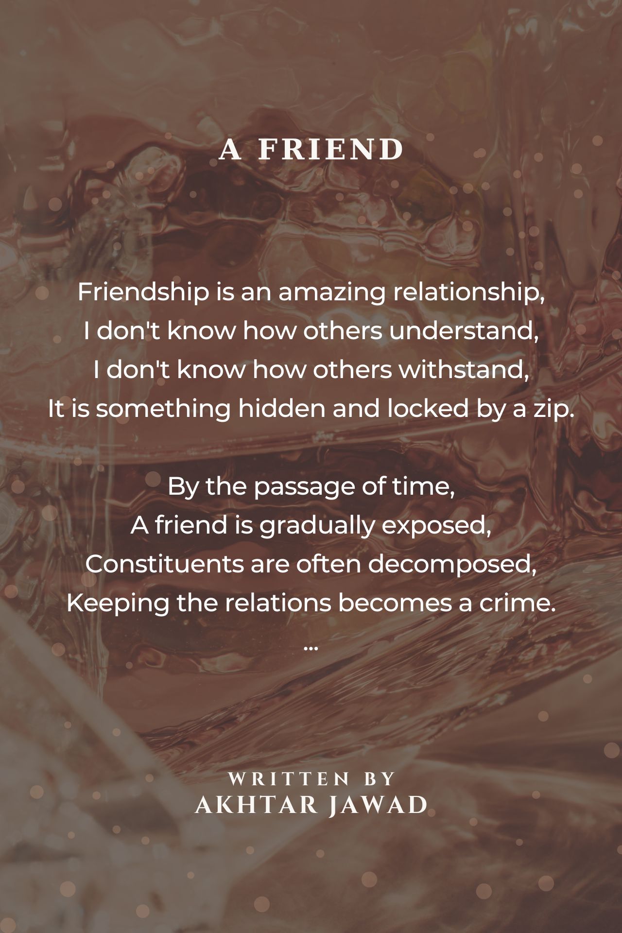A great friend is he who can understand your likeness and dislikeness so well. They make a covalent bond of friendship on the platform of common interest. It's a precious poem.