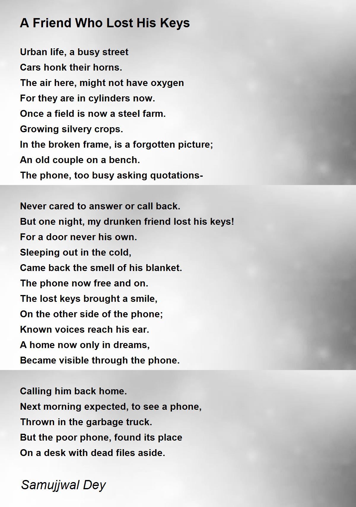 But one night, my drunken friend lost his keys!
