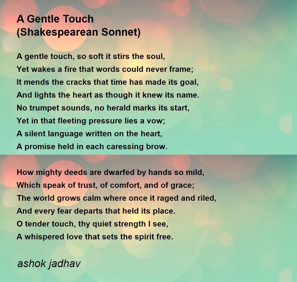 O tender touch, thy quiet strength I see,