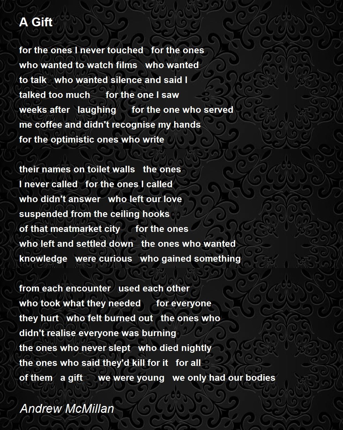 of them a gift we were young we only had our bodies