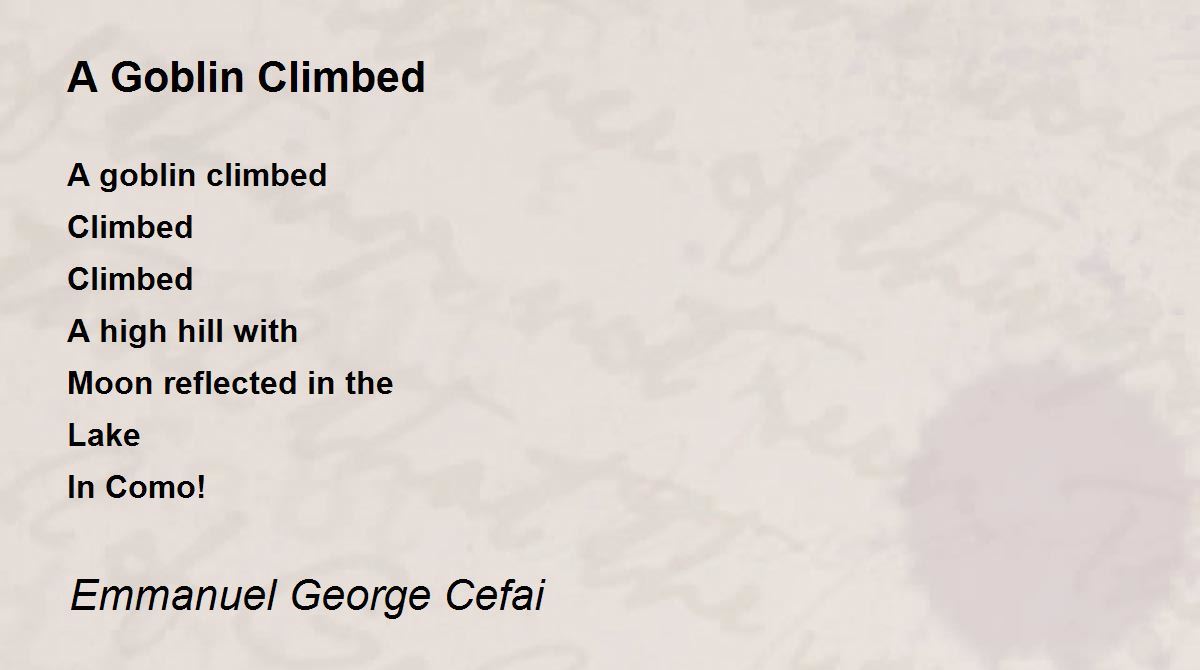 A goblin climbed Climbed Climbed A high hill with Moon reflected in the Lake In Como!