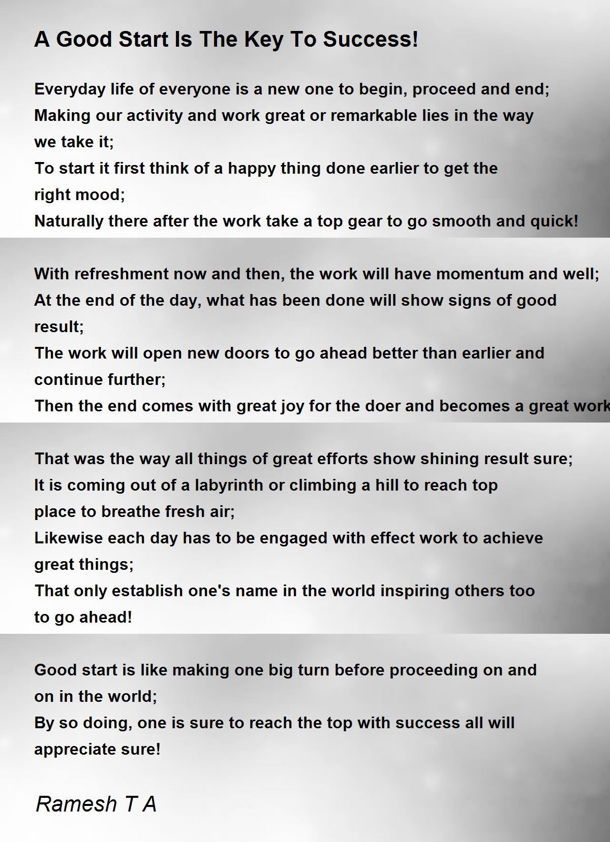 Good start is like making one big turn before proceeding on and on in the world; By so doing, one is sure to reach the top with success all will appreciate sure!