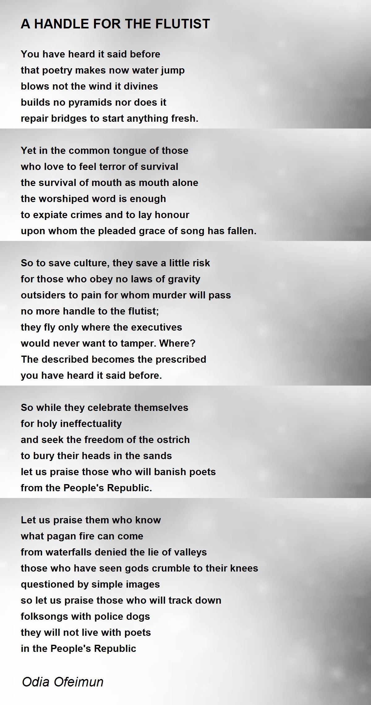 let us praise those who will banish poets