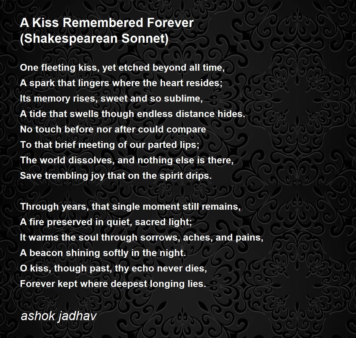 O kiss, though past, thy echo never dies,