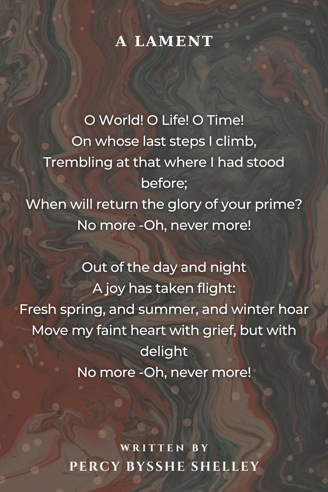 This is the poem written at the lowest ebb of his life! Can freshness of Spring and Summer be ever regained in Winter? Shelley asks quite contrary to his former poem in his best of mood saying 'If winter comes can spring be far behind? ' This is the perfect nature of a romantic poet one has to make a note! ! !
