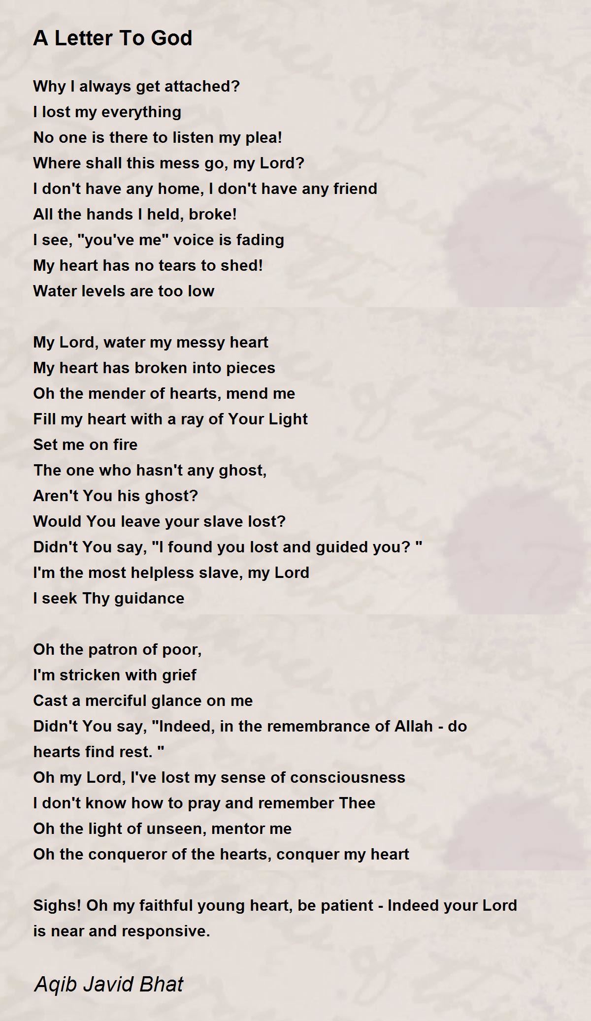 Sighs! Oh my faithful young heart, be patient - Indeed your Lord is near and responsive.