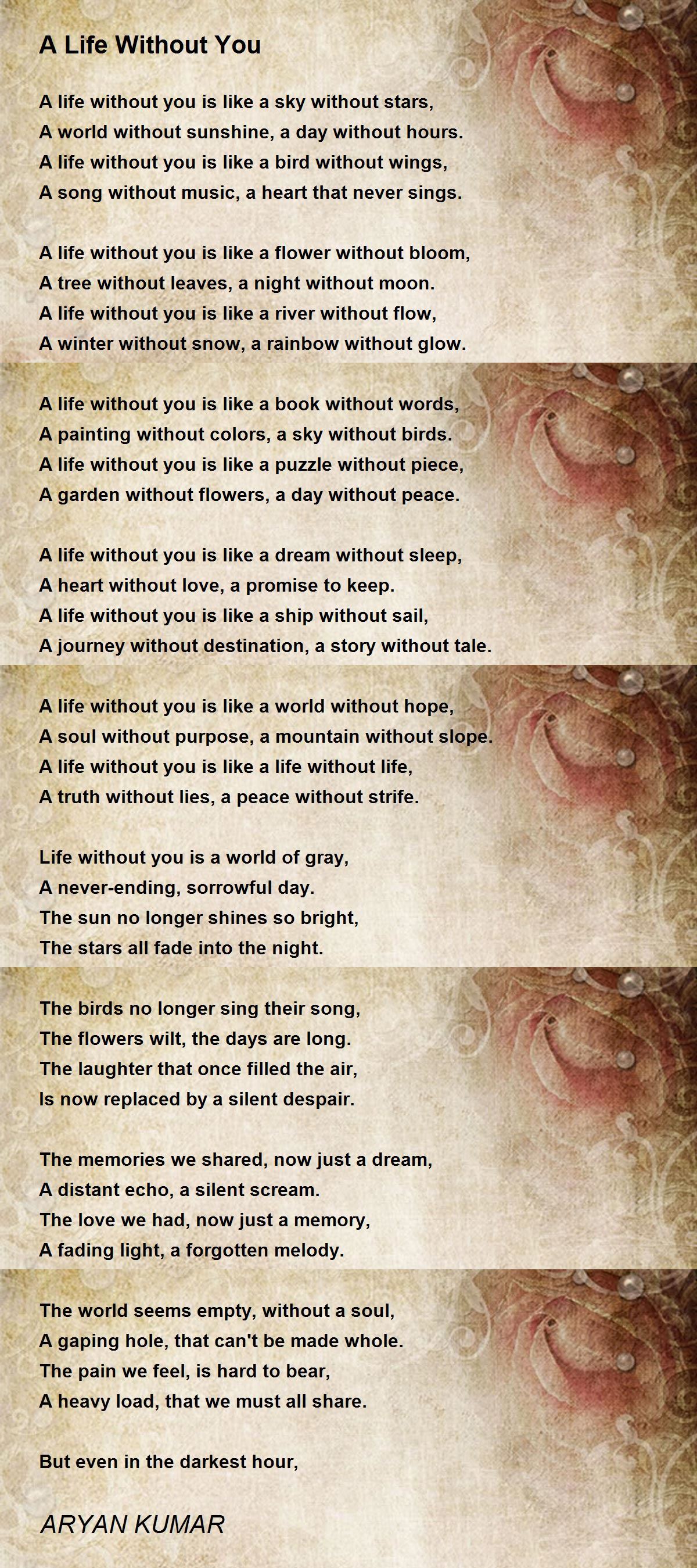A life without you is like a life without life,