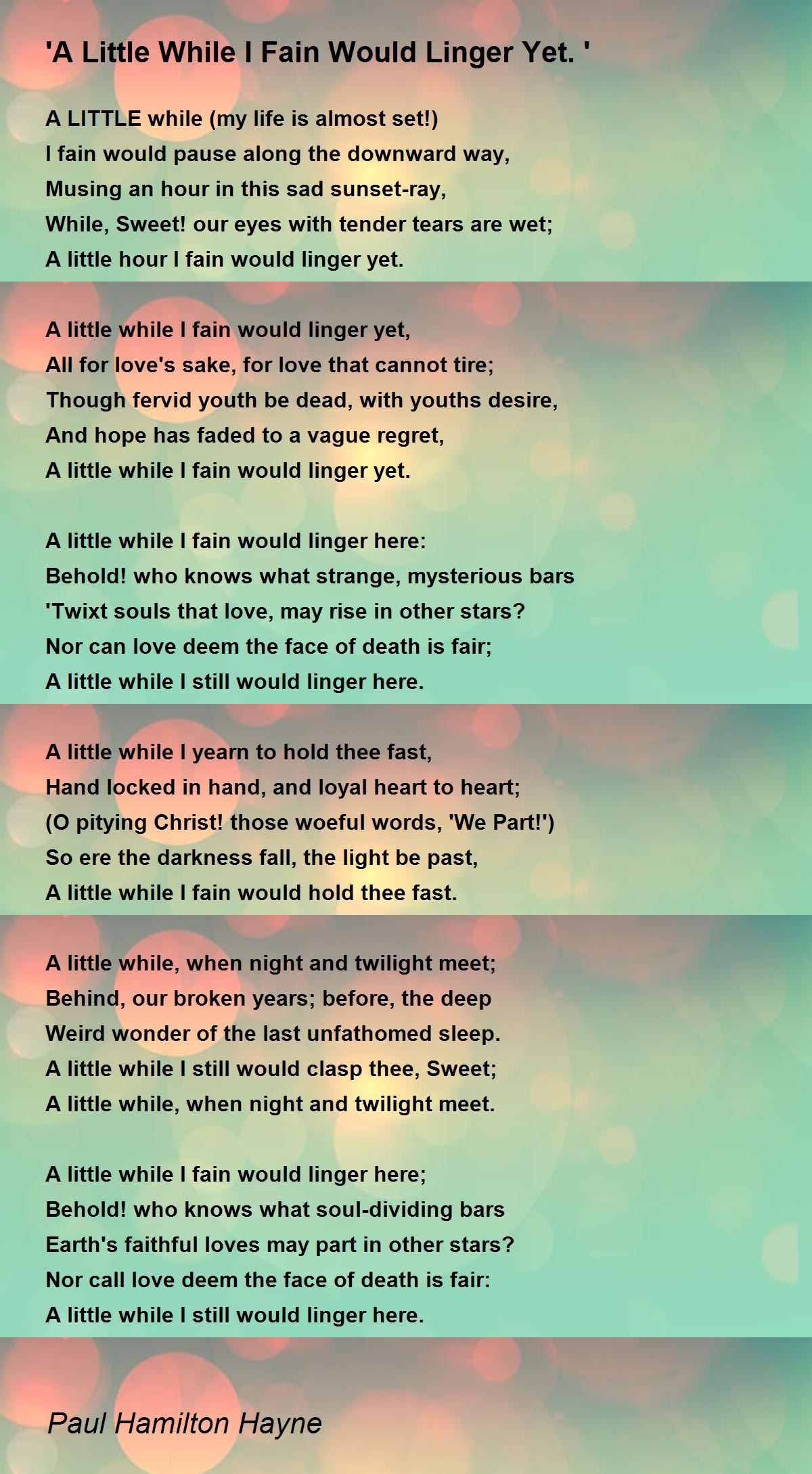 A little while I fain would linger here: