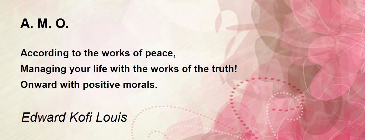 According to the works of peace, Managing your life with the works of the truth! Onward with positive morals.